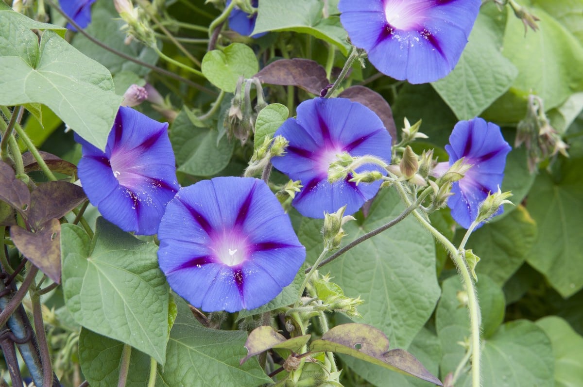 Comme mentionné précédemment, cette plante originaire d’Amérique du Nord et du sud détient plusieurs secrets. En effet, ces plantes vigoureuses poussent rapidement et peuvent grimper très haut. Les ipomées pourpres présentent un port assez léger, des feuilles trilobées, de fines tiges et des fleurs en forme de Pentagone assez originales. Ces dernières sont généralement de divers coloris en fonction de la nature de l’ipomée, mais elles sont particulièrement violacées en ce qui concerne l’ipomée pourpre.